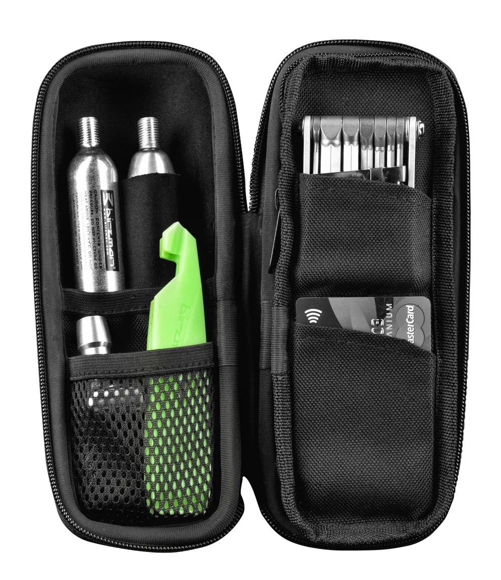 Det er også en lomme med plass til et kreditkort samt lommer med plass til dekkspaker, CO2 patroner osv.