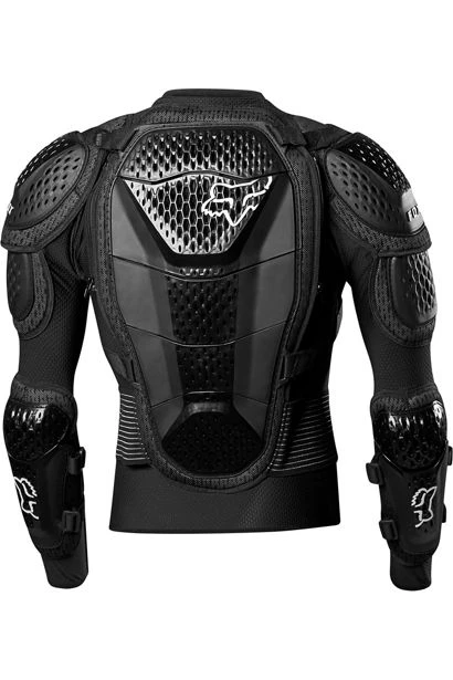 Jakken har en kraftig todelt brystplate i tillegg til skulder- og albuebeskyttelse.