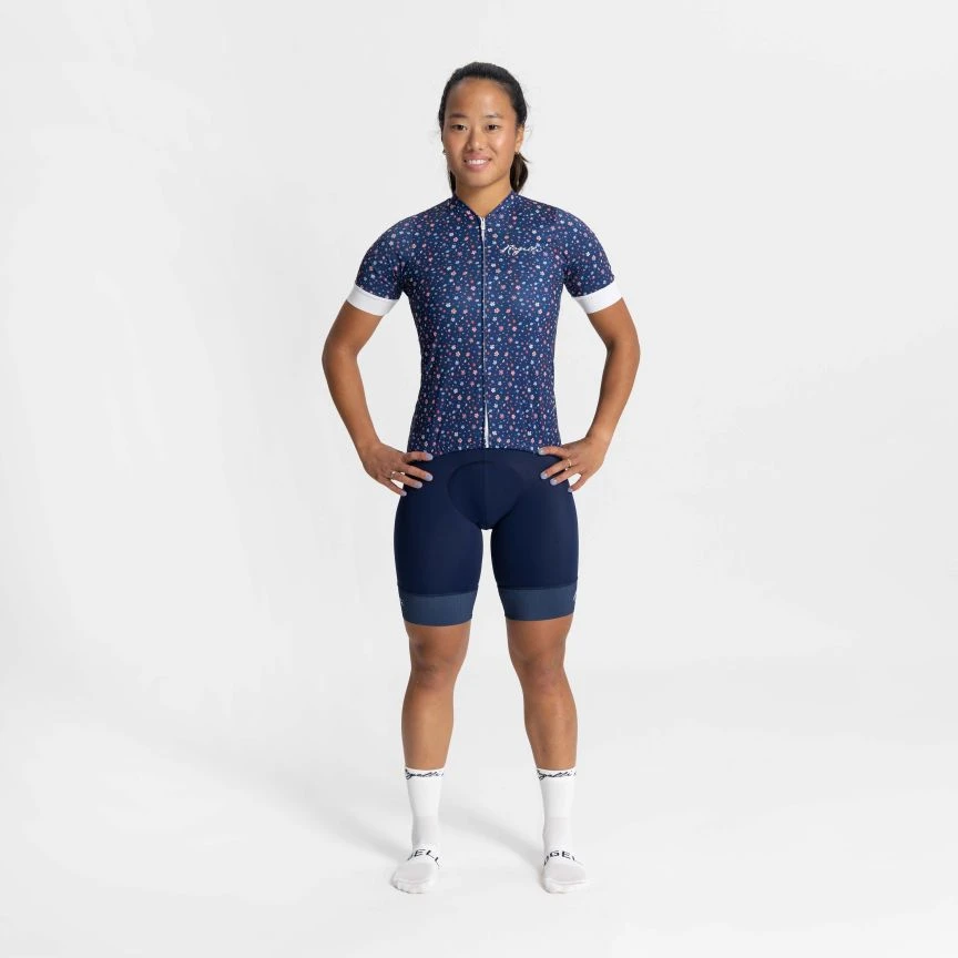 Når solen skinner og blomstene blomstrer, er det på tide å ta på seg den nye Lily sykkeltrøya. Med et fint blomsterprint i pastellfarger og sporty hvite detaljer på de elastiske ermene vil du føle deg fresh og trendy på sykkelturen.